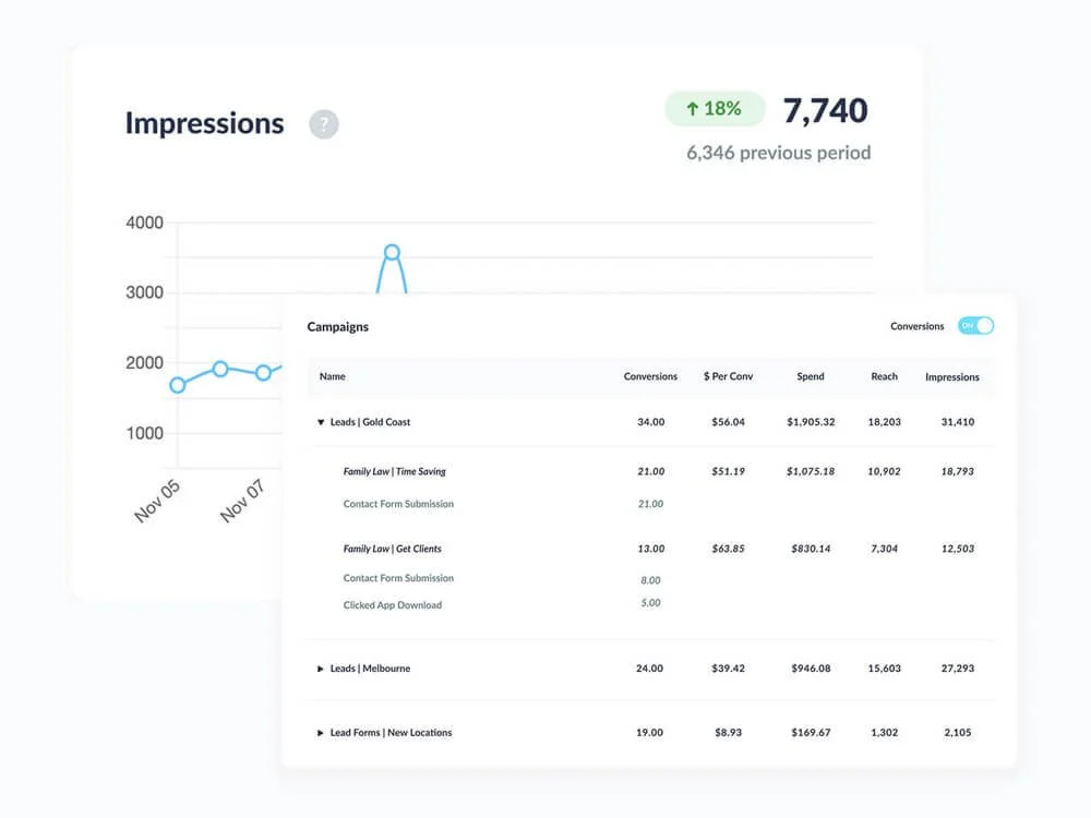 A simple, beautiful and affordable tool that automatically brings all your data into a central report, saving hours of work and impressing the pants off your clients.